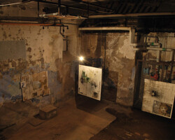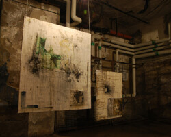 Through fragments of images and text, the artist enters into a dialogue with the worn boiler room at Konstepidemin. Guided by her own system of rules, she constructs a narrative that questions truth, subjectivity, and the nature of evil. Loosely inspired by P.O. Enquist’s The Downfallen Angel (1985), the installation invites the viewer into a chaotic yet contemporary reflection on human nature, without offering clear answers.