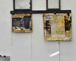 The work incorporates images of a brain scan from Frihetsorganismen, alongside collages composed of photographs from the hospital in Pripyat—the town built for the Chernobyl nuclear plant—and from an abandoned children’s home on the outskirts of Chernobyl. These materials are brought together through a process that treats the exhibition space as an active element, working in close dialogue with its architecture and atmosphere.