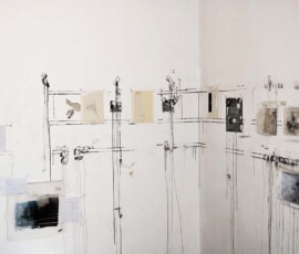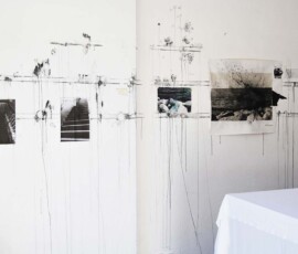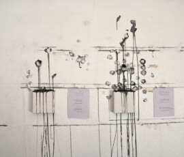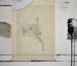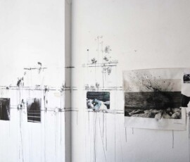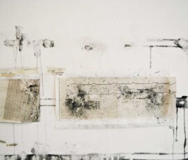 “It is the inherent capacities of material that inspires her. This makes her pictorial world into a fluid jumble of information omnipresent, and in such a way that it need not endure any void. The seemingly chaotic yet delicate flow of image and text does not allow any comparison to an established sense of present, but obtains, spreads and expresses the notion of constant movement.” /Guido Zeccola writer and journalist. Galleri Konstapoteket, Stockholm 2016