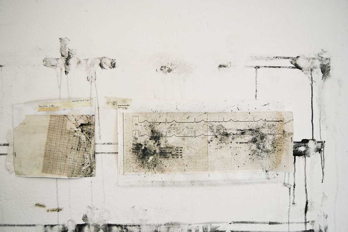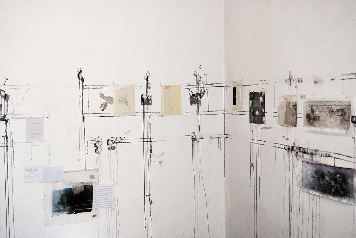 “It is the inherent capacities of material that inspires her. This makes her pictorial world into a fluid jumble of information omnipresent, and in such a way that it need not endure any void. The seemingly chaotic yet delicate flow of image and text does not allow any comparison to an established sense of present, but obtains, spreads and expresses the notion of constant movement.” /Guido Zeccola writer and journalist. Galleri Konstapoteket, Stockholm 2016