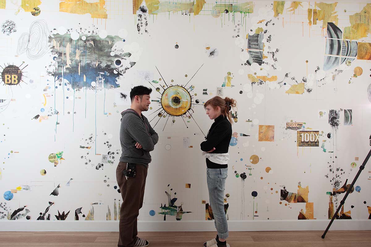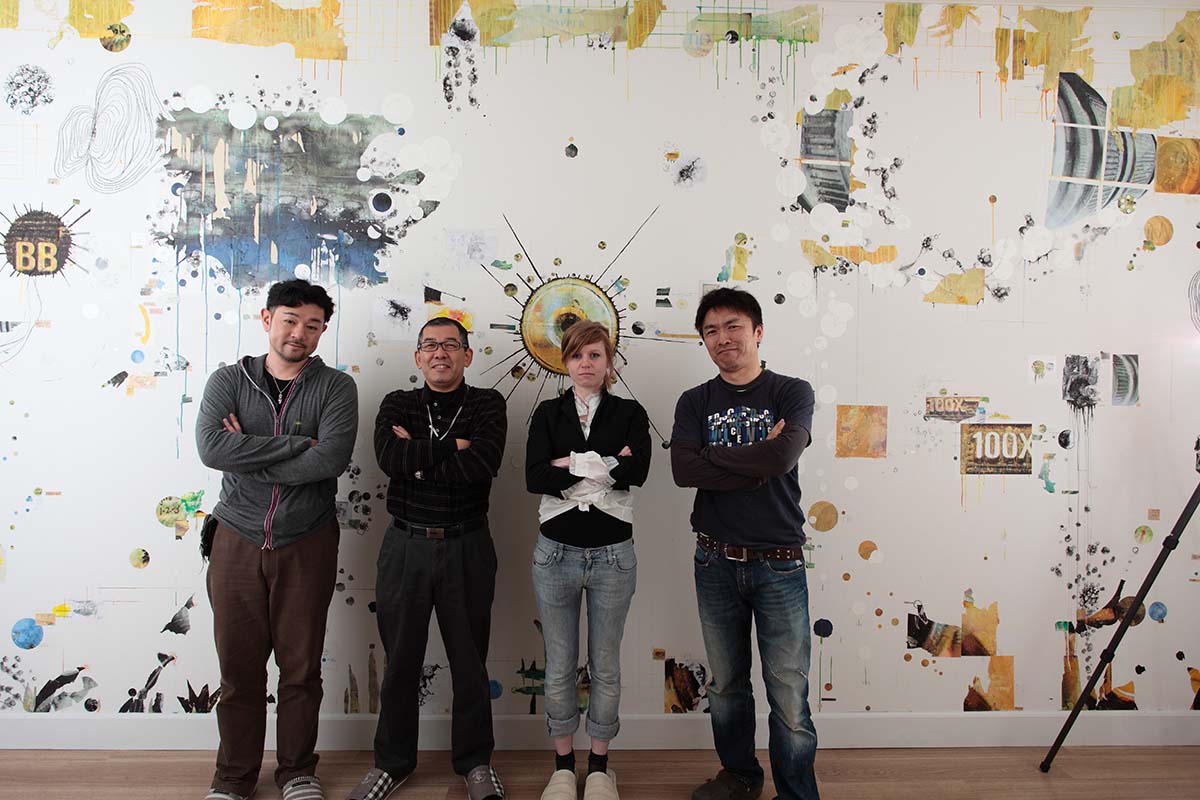 Fukui Camera Service repairs large volumes of damaged cameras for camera manufacturers across Japan. I was invited to create a wall piece for their newly renovated premises, intended to inspire both employees and visiting clients.