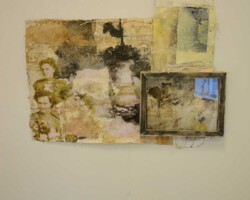 The collages draw on images from the Orechov series and fragments and extracts from The Dancing of Lizards, alongside the first display of the artist’s book Sondra’s Perspective.